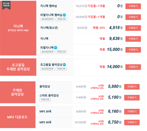 또한 이미 지니 뮤직에서 정기결제 이용권을 사용하고 있다면 통신사 부가서비스를 동시에 이용할 경우 요금이 중복으로 발생되니 조심해주세요. 통신사 부가서비스는 통신사를 통해서만 해지 가능한 점도 유의해 주세요.