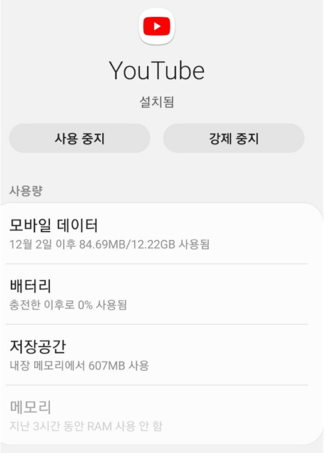 그리고 여기서 데이터와 캐시를 삭제해 주시면 됩니다. 휴대폰에서 유튜브 버퍼링이나 렉이 걸린 경우 가장 첫 번째로 하기 좋은 방법입니다. 아만 데이터와 캐시를 삭제하게 되면 그동안 봤던 기록들이나, 여러 정보들이 날아갈 수 있으니 그 점은 유의하시고 삭제하시는 것이 좋겠습니다.