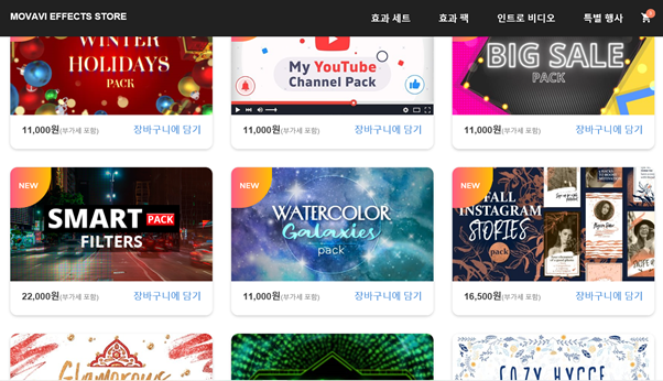 두 번째 단점은 기본 리소스가 적다는 것입니다. 이 단점의 경우 사실 거의 대부분의 비디오 편집기에서 동일하게 나타납니다. 대신 모바비는 다양한 효과 팩을 제공하는데 가격이 꽤 비쌉니다. 퀄리티는 높기 때문에 필요하실 경우 사용하시는 걸 추천드립니다.