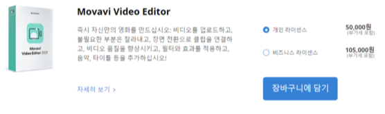 모바비 비디오 에디터 플러스는 65,000원 기본 모바비 비디오 에디터는 50,000원으로 사실상 가격 차이가 얼마 나지 않습니다. 기업에서 상업 목적으로 비디오 에디터를 이용하실 경우에는 비즈니스 라이선스를 통해 구매하셔야 합니다.