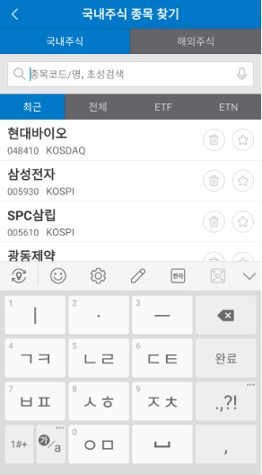 그럼 이렇게 주식을 검색할 수 있는 화면이 나옵니다. 이곳에 평소 관심있던 회사나 주식 등을 검색해주시면 됩니다. 우리나라에서 가장 핫하고 잘 알려진 삼성전자를 함께 검색해서 주식 사는 법 알아보도록 하겠습니다.